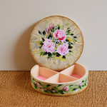 2016Decoratieve houten sieraden doos, handgeschilderd met acryl en gelakt met glanzend vernis. Diameter is 16 cm, hoogte is 6 cm. Slechts één stuk gemaakt. Het wordt geleverd met een certificaat van echtheid.